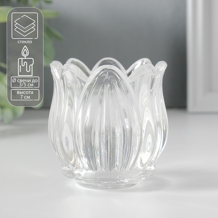 Подсвечник стекло на 1 свечу "Подснежник" прозрачный 7х7х7 см