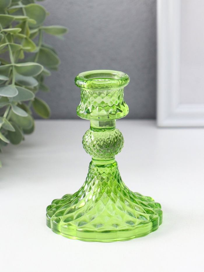 Подсвечник стекло на 1 свечу "Женева" d-2,2 см зелёный 10,5х7,7х7,7 см