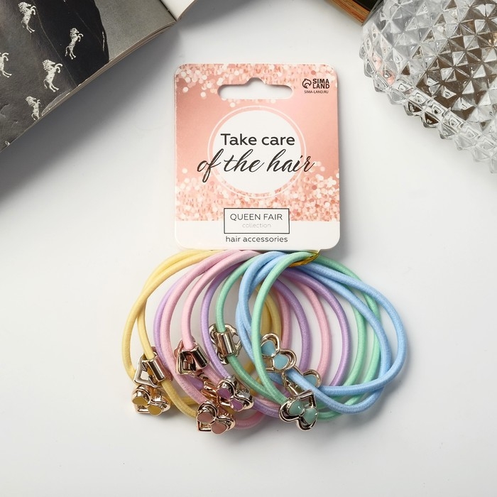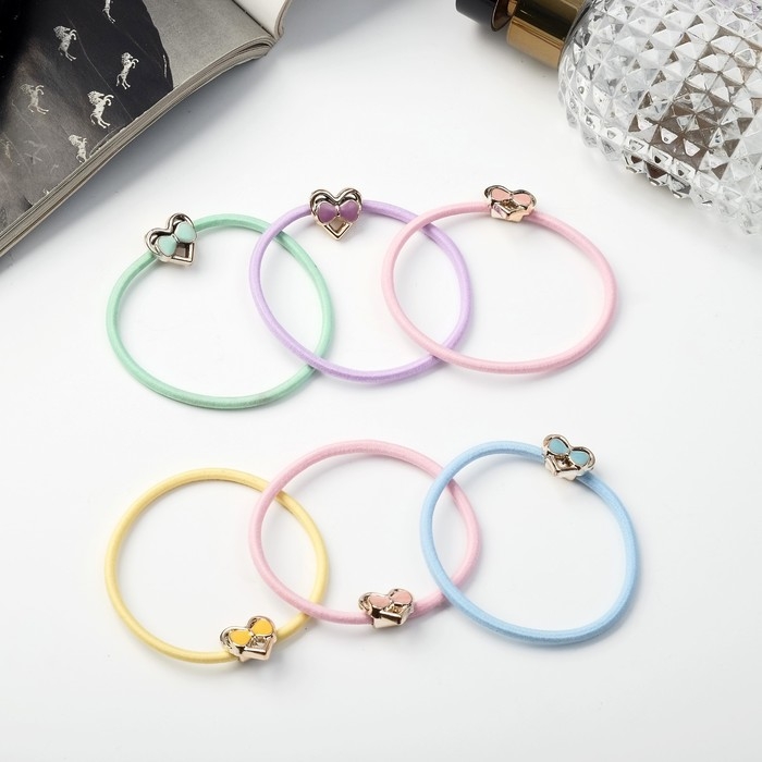 Резинка для волос "Делия" (набор 10 шт) сердце люкс, 5 см, микс
