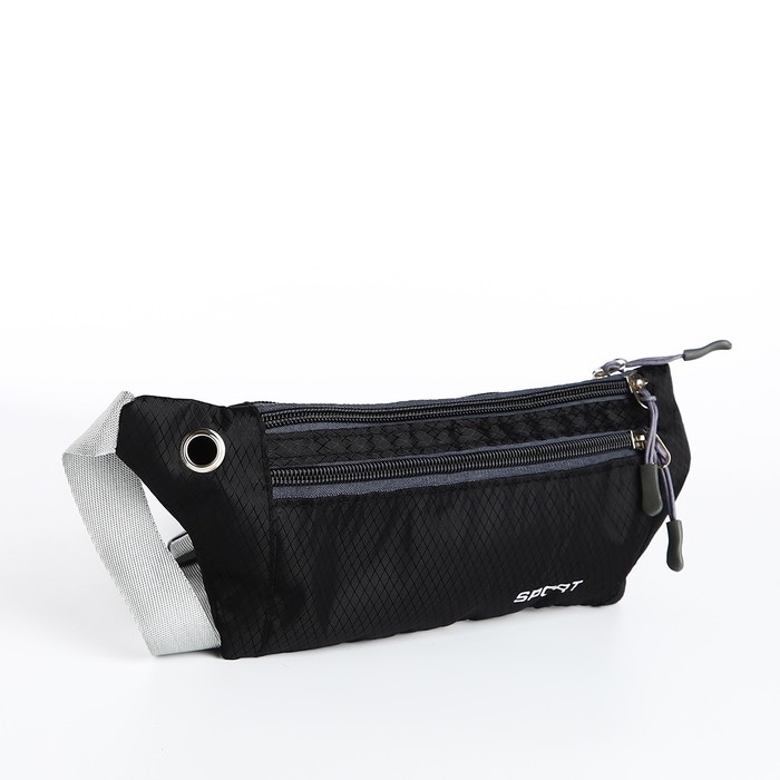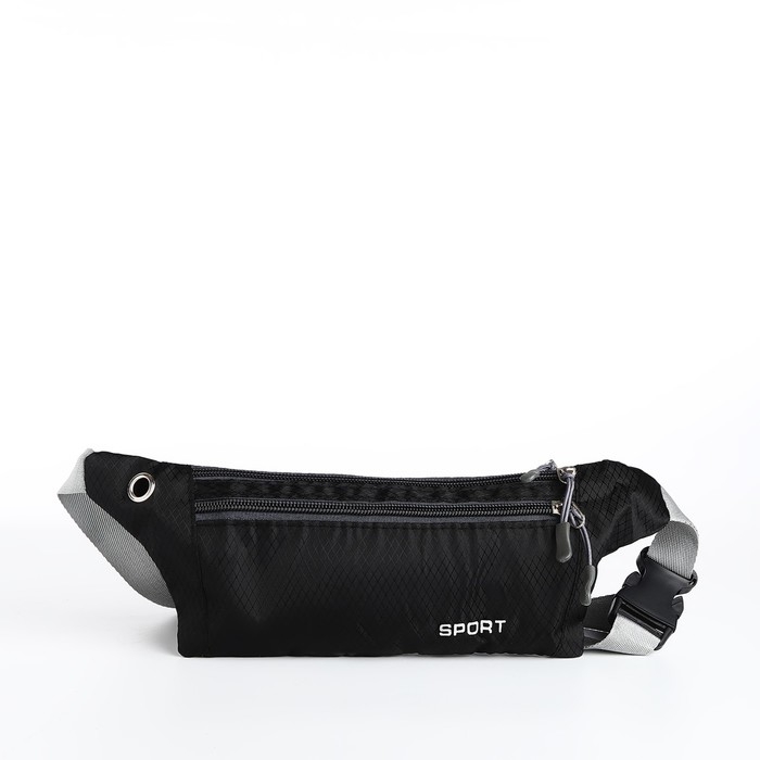 Поясная сумка на молнии, с карманом, разъем для USB, чёрный