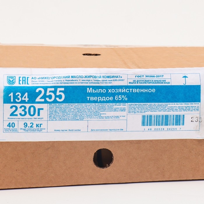 Мыло хозяйственное твердое 65%, 230 г