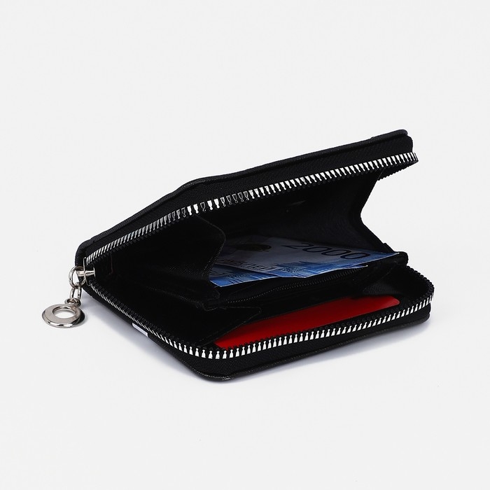 Кошелёк на молнии, отдел для карт, для монет, цвет чёрный