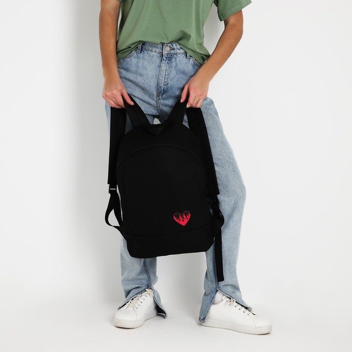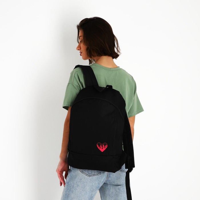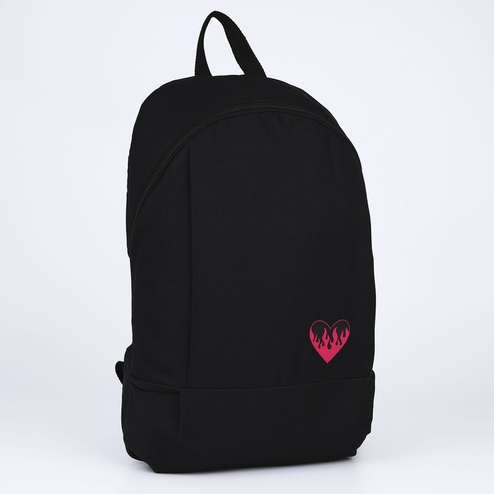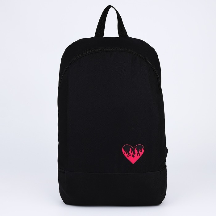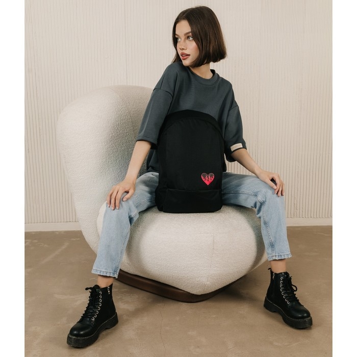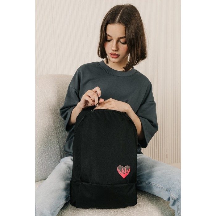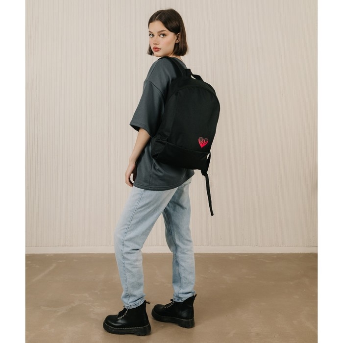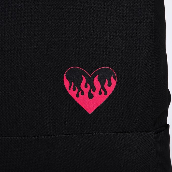 Рюкзак школьный текстильный «Сердце», 46х30х10 см, вертикальный карман, цвет чёрный