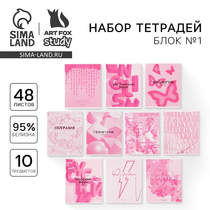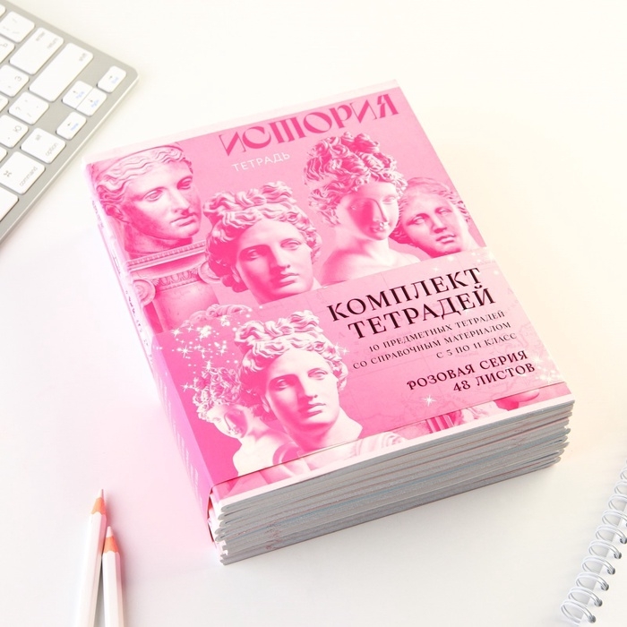 Комплект тетрадей 48 листов, 10 предметов со справ. мат. в обечайке "Розовый"