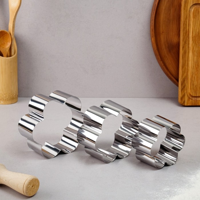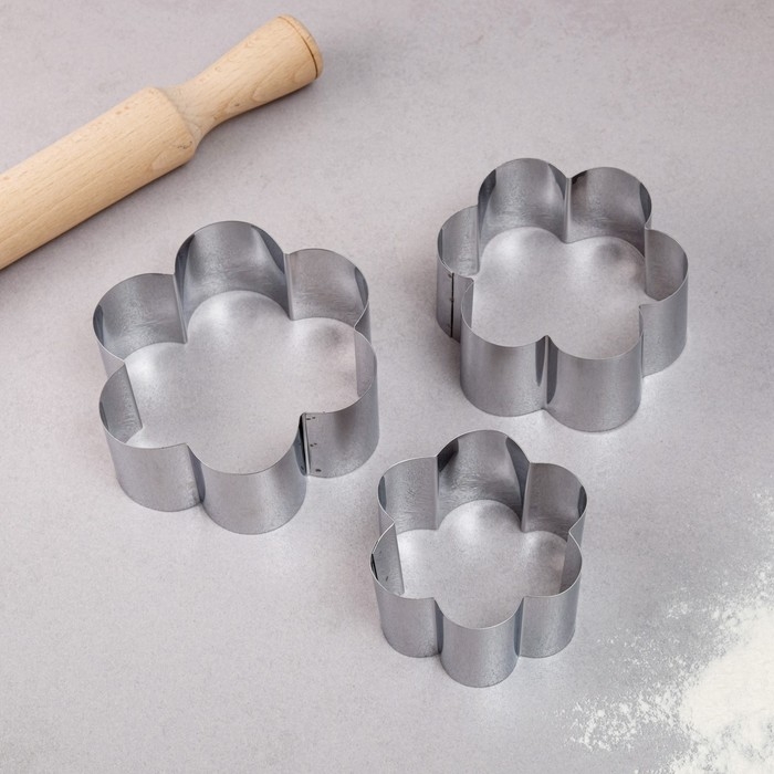 Набор форм для выпечки и выкладки «Цветок», 12×12×5 см, нержавеющая сталь, 3 шт.