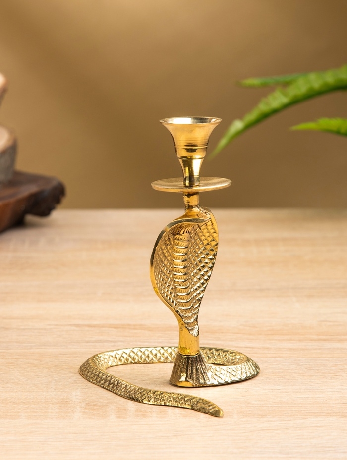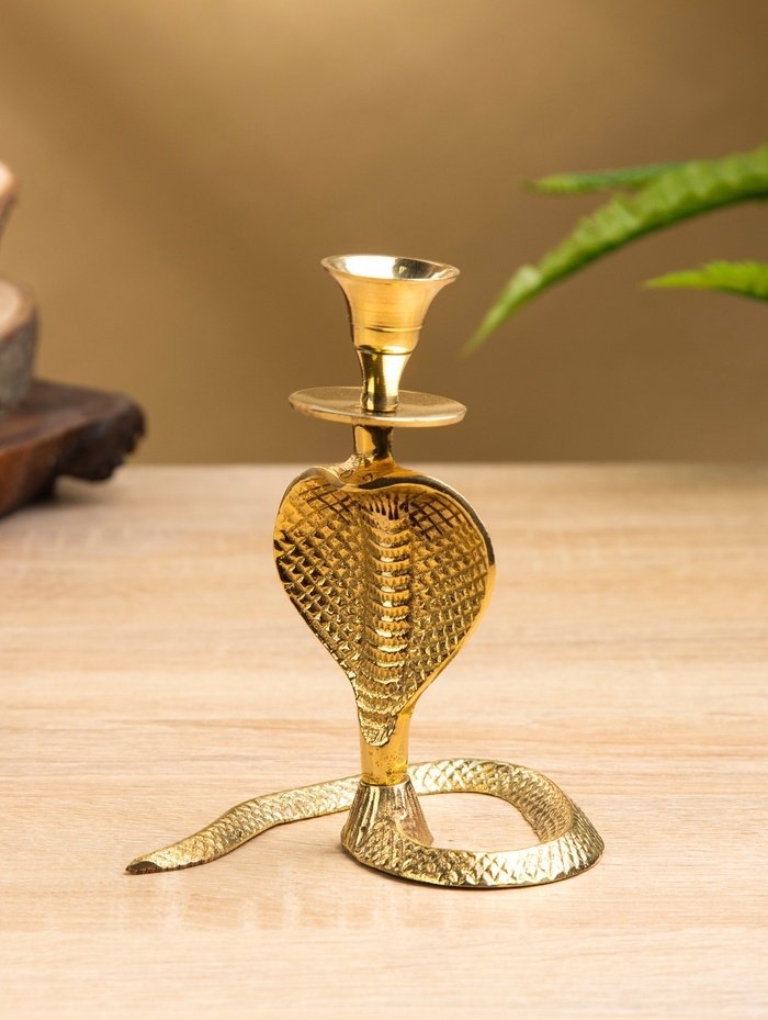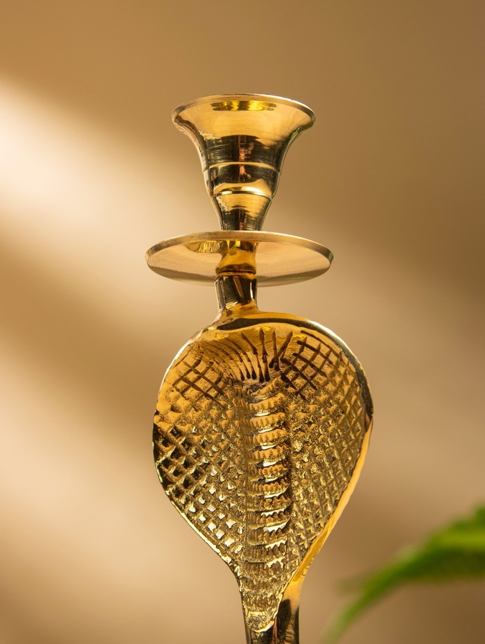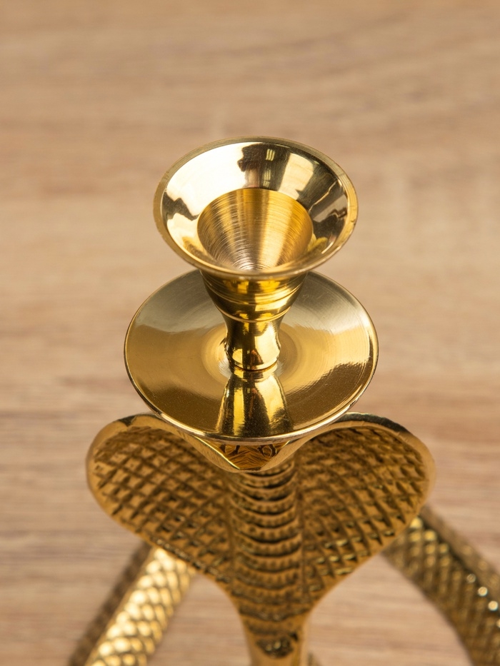 Подсвечник «Золотая кобра», латунь, 8.5×11×12.5 см
