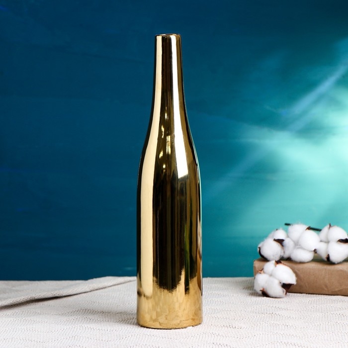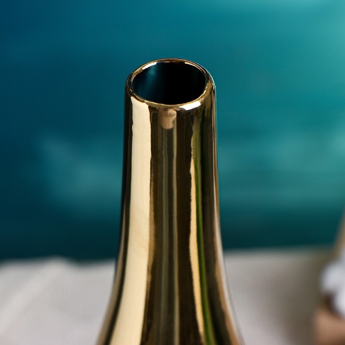 Керамическая ваза для цветов, сухоцветов «Голден тайм», настольная, 33×7.5×3 см, золото