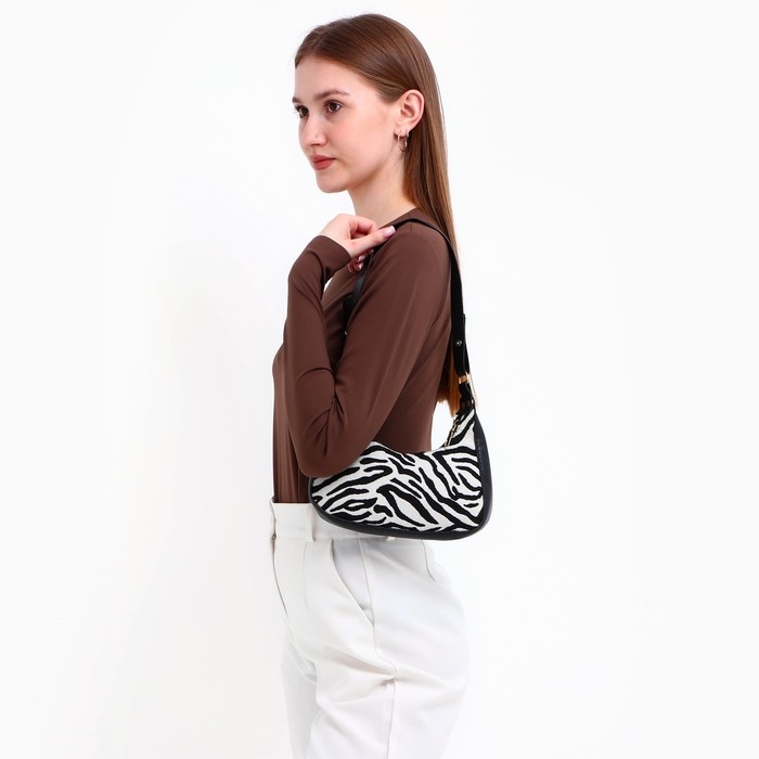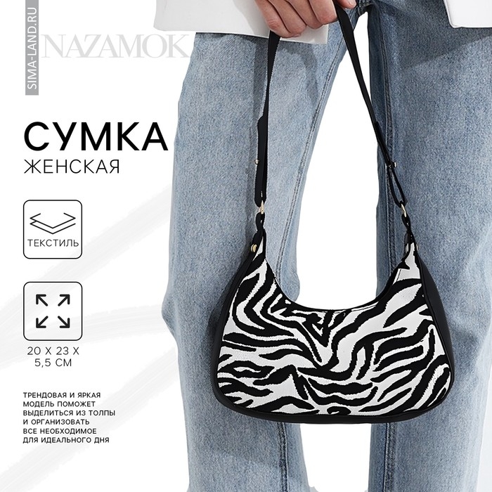 Сумка женская текстильная, 20х23х5.5 см, зебра