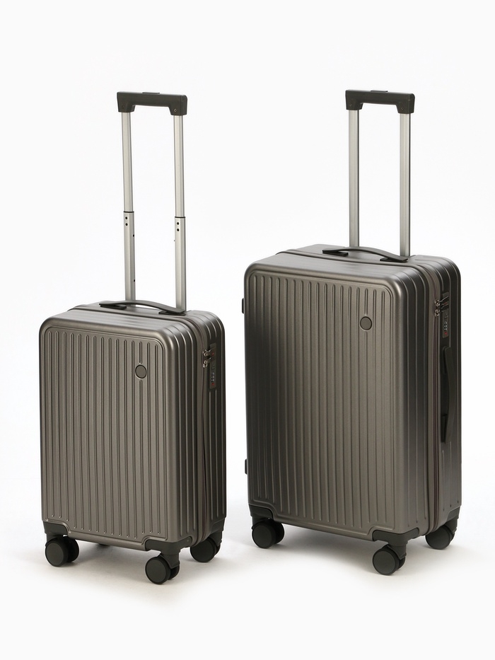 Чемодан 20", PС, 34*22*56, отд на молнии, код замок, 4 колеса, т. серый