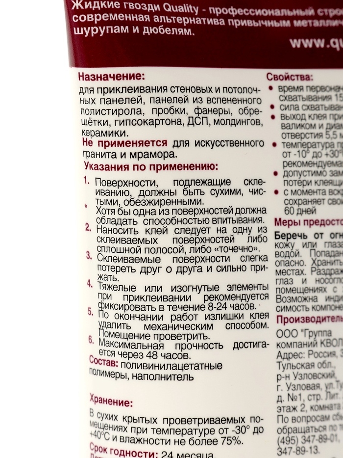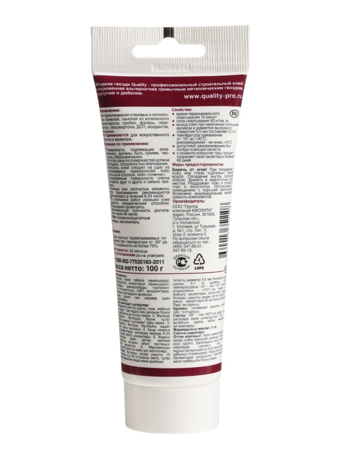 Жидкие гвозди Quality, особопрочные, тюбик, 100 гр