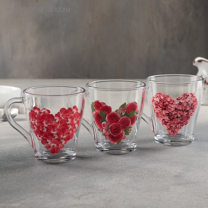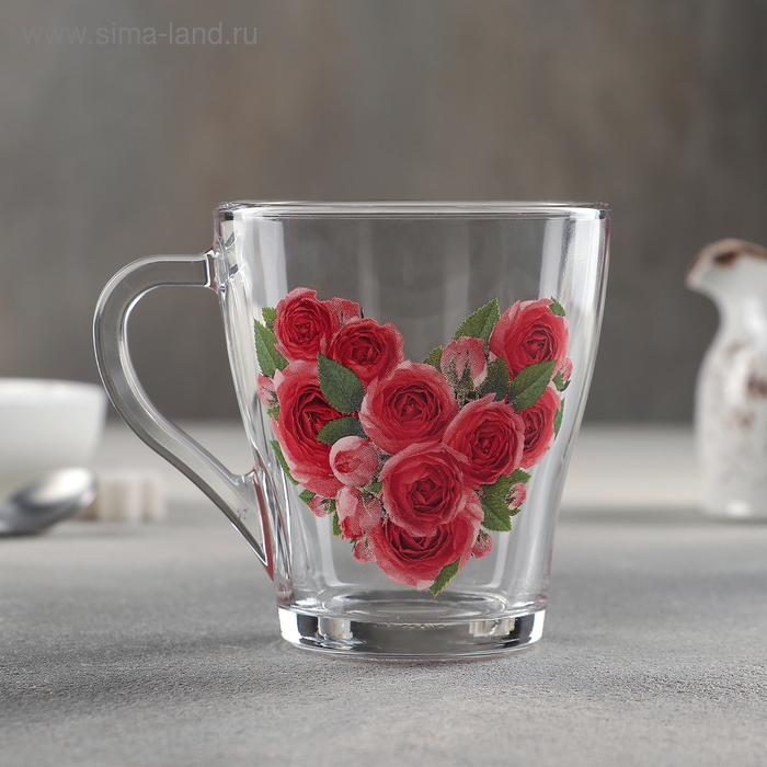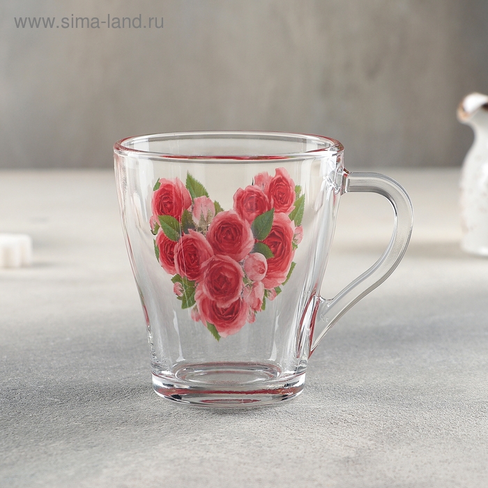 Кружка стеклянная «Цветочное сердце», 250 мл, рисунок МИКС