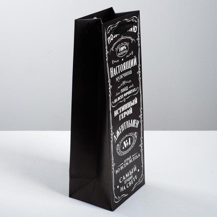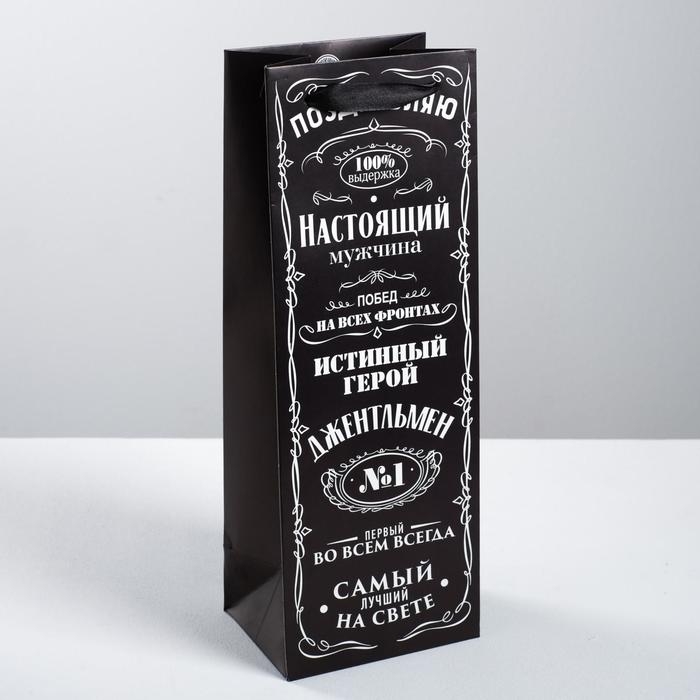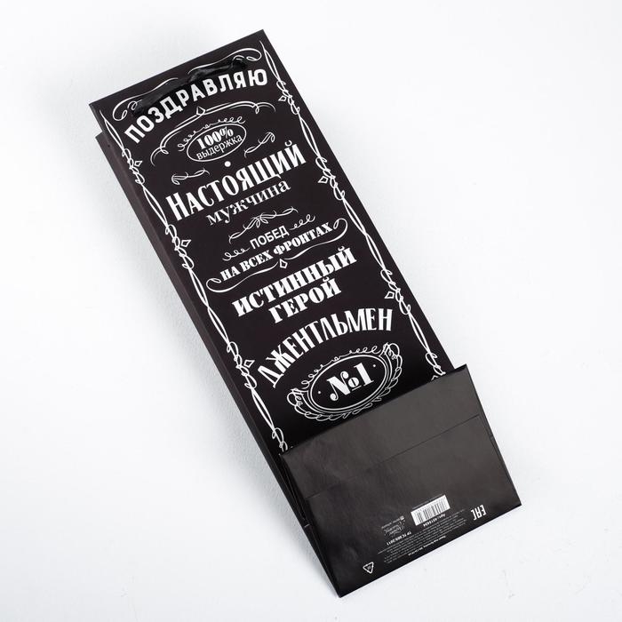 Пакет подарочный под бутылку, упаковка, «Джентльмен», 36 х 13 х 10 см