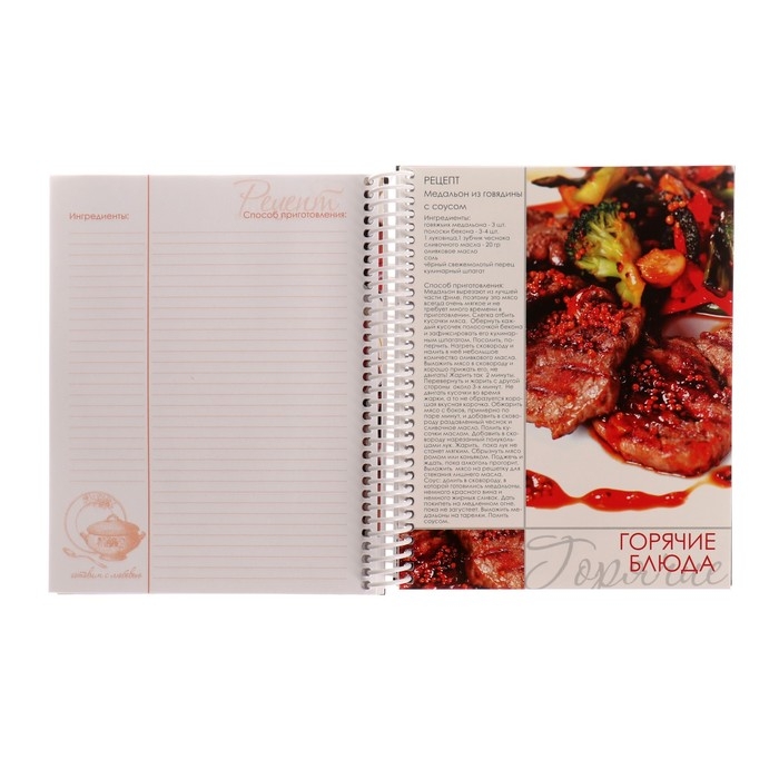 Книга для записей рецептов А5 80 листов на гребне "Моя кухня", твёрдая обложка, 5 цветных разделителей