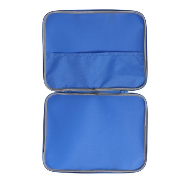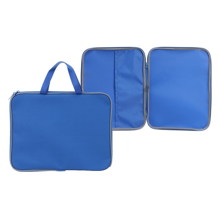 Папка-портфельформата А4, размер 360×270×20мм, изготовлена изткани, предназначена для переноски ихранения документов. Оснащена молнией. Папка имеет две ручки из тесьмы. Есть внутренний карман, предназначенный для различных мелочей.