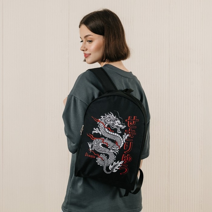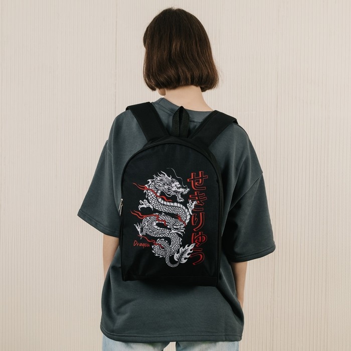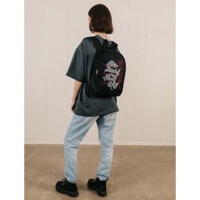 Рюкзак школьный текстильный «Дракон», 38×14×27 см, чёрный