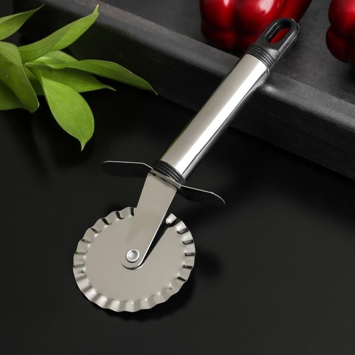 Нож для пиццы и теста Доляна «Помощник», 18 см, ребристый, цвет черный