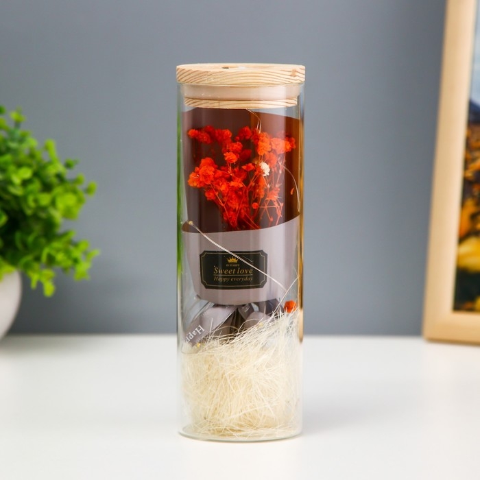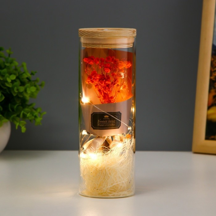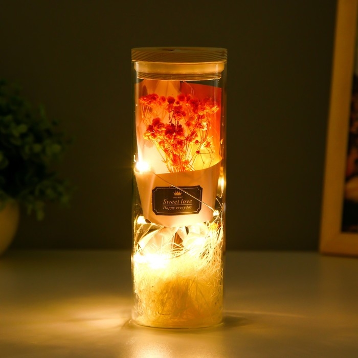 Ночник колба "Букет из красных цветов" LED от батареек LR1130 6,5х6,5х19 см RISALUX