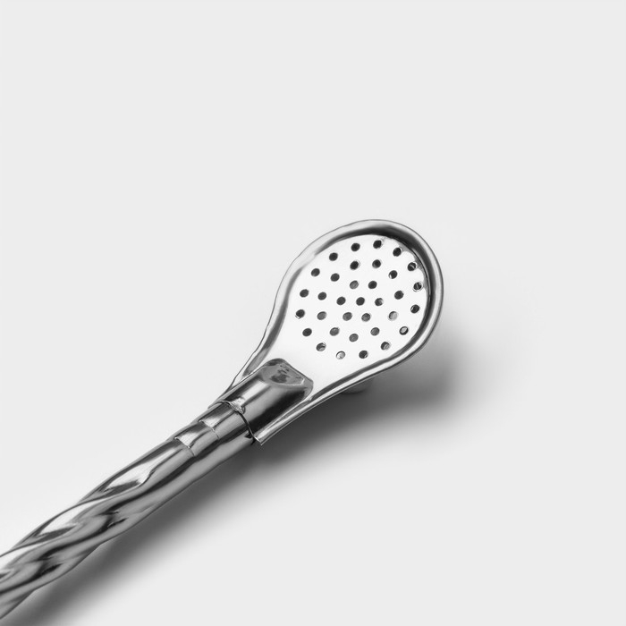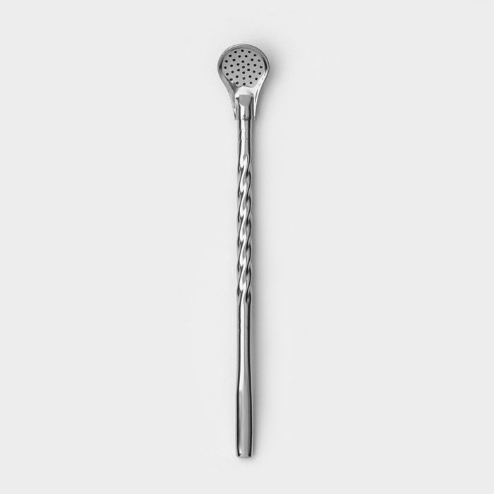 Ложка-бомбилья для питья чая мате выполнена из прочной нержавеющей стали. Она имеет элегантную рельефную ручку.
