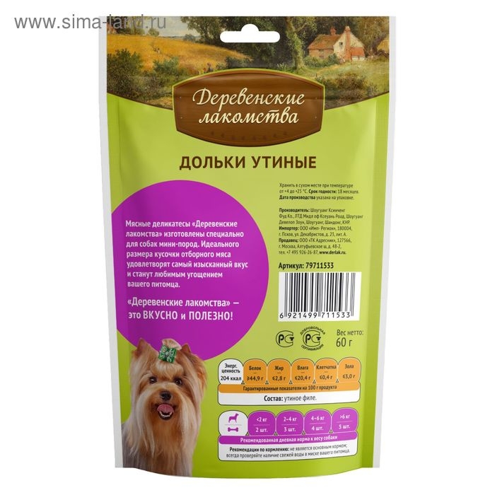 Дольки утиные "Деревенские лакомства" для собак мини-пород, 55 г