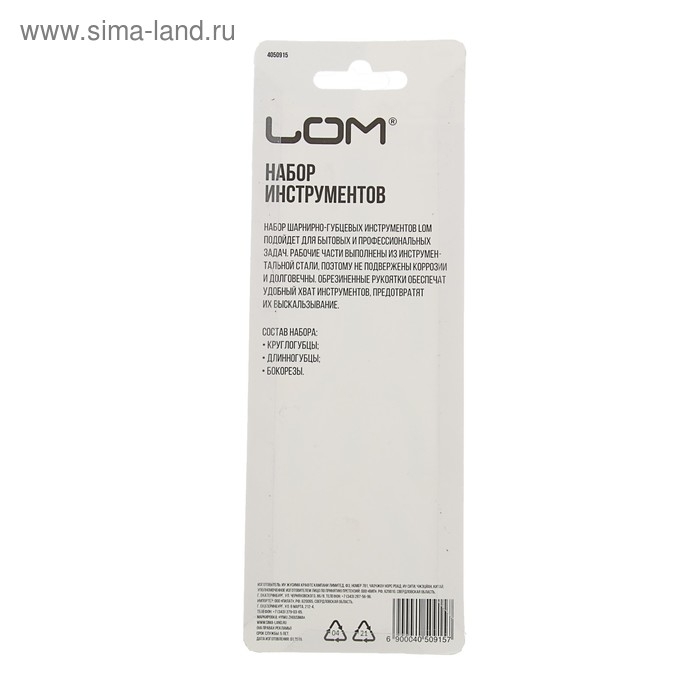Набор инструментов ЛОМ, круглогубцы, длинногубцы и бокорезы, обрезиненные рукоятки, 80 мм