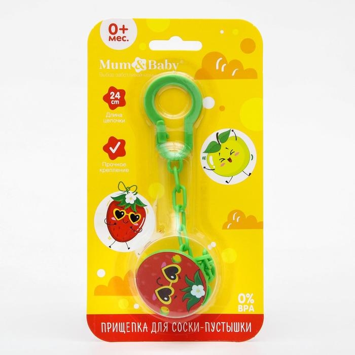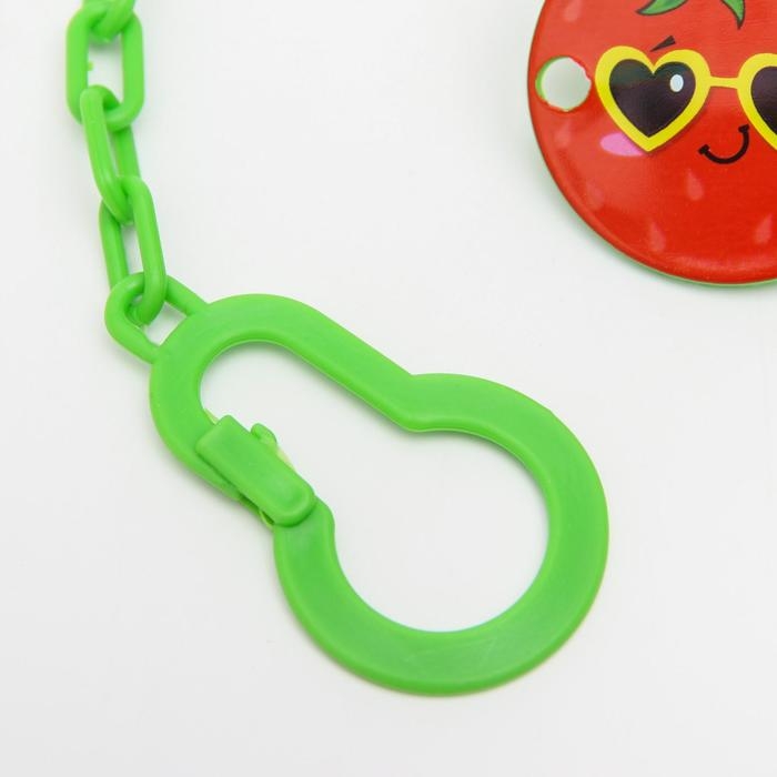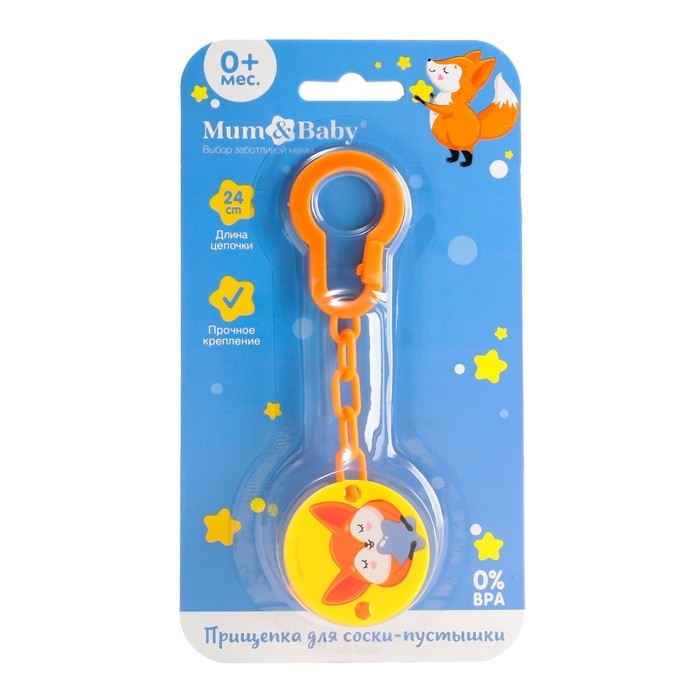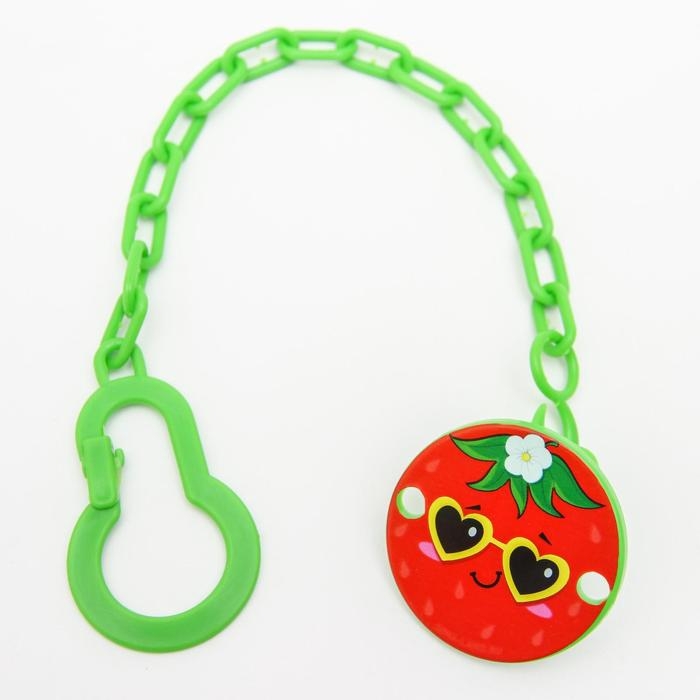 Изделие фиксируется на одежде ребёнка. На конце цепочки есть карабин, который зацепляется за кольцо пустышки. Надёжное крепление убережёт вещь от падения на пол, если малютка случайно выронит её изо рта.