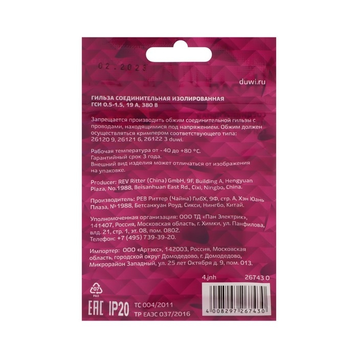 Гильза соединительная изолированная düwi ГСИ, 0.5-1.5, 10 шт.
