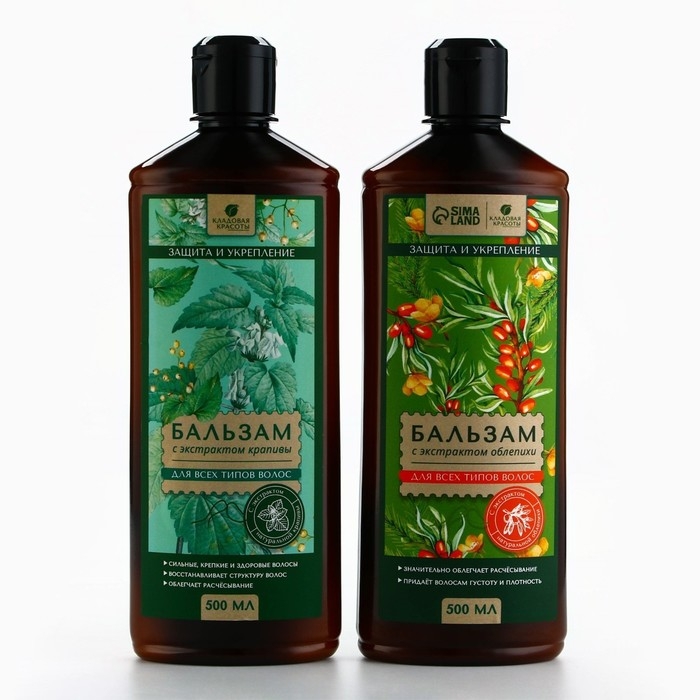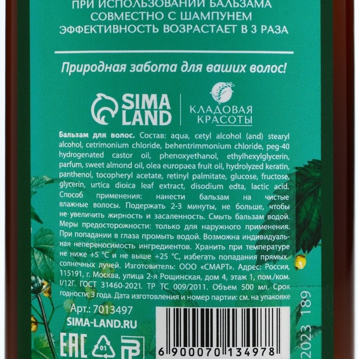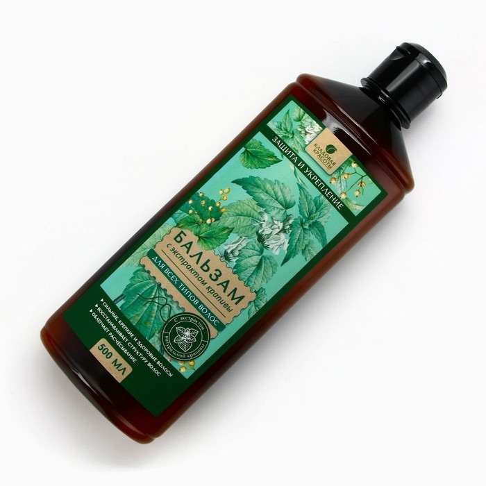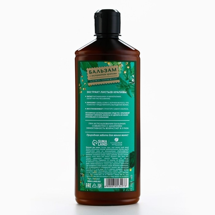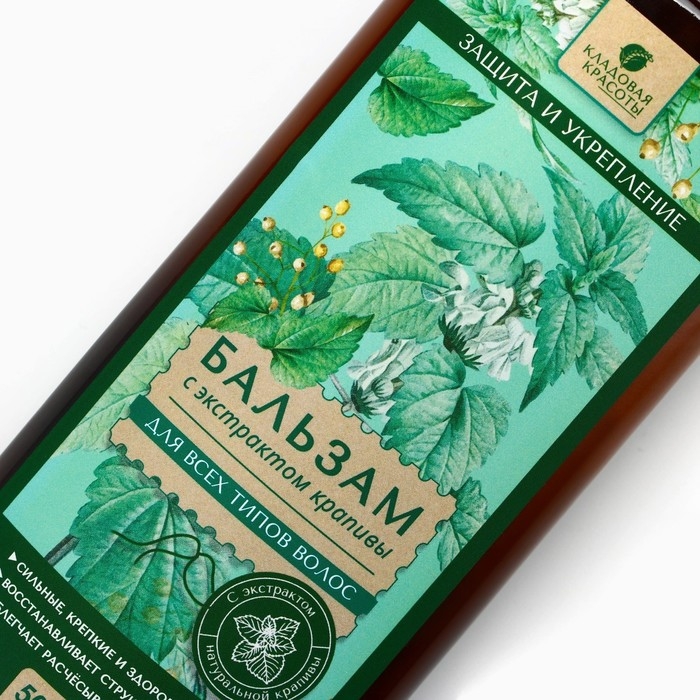 Бальзам для волос с экстрактом крапивы, защита, укрепление, восстановление, лёгкое расчёсывание, 500 мл, КЛАДОВАЯ КРАСОТЫ