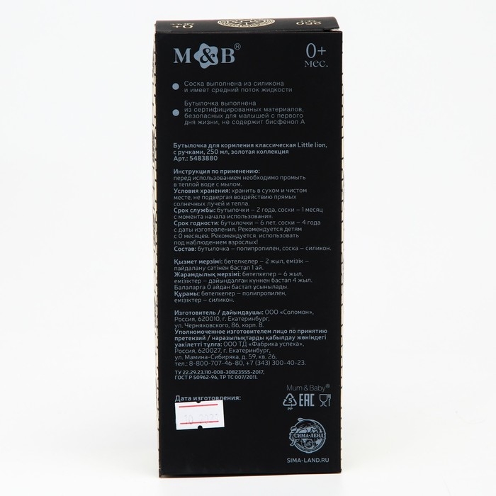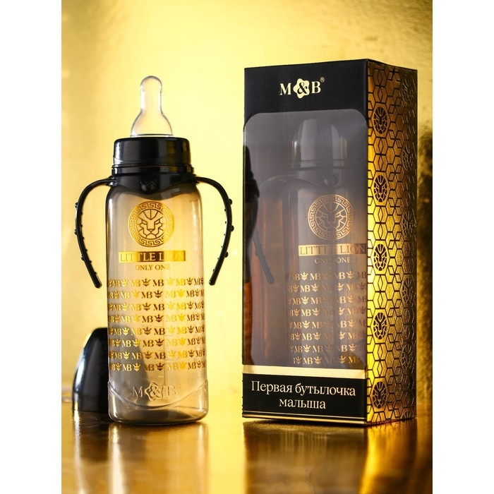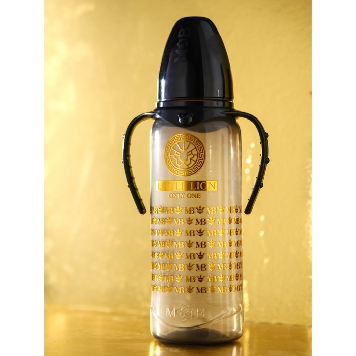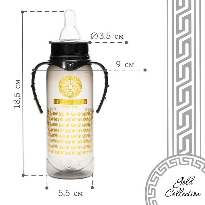 Бутылочка для кормления «Little lion», классическое горло, с ручками, 250 мл., от 0 мес., Золотая коллекция