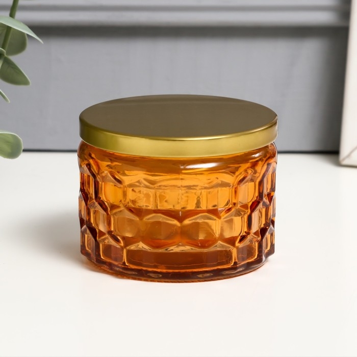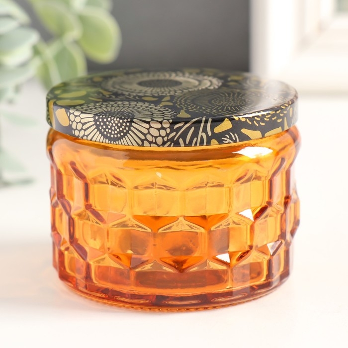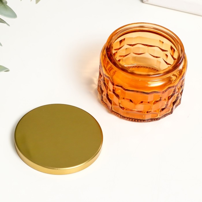 Банка для свечей стекло с крышкой "Соты" оранж 5х7х7 см, МИКС