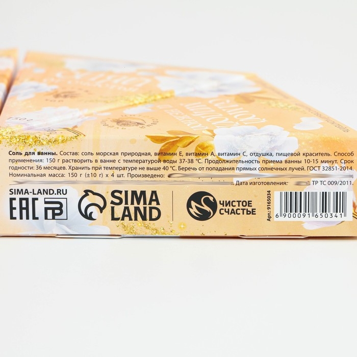 Подарочный набор косметики «Сияй от счастья!», соль для ванны 4 х 150 г, ЧИСТОЕ СЧАСТЬЕ