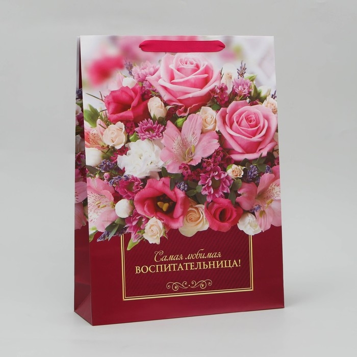 Пакет подарочный ламинированный, упаковка, «Любимая воспитательница», L 28 х 38 х 9 см