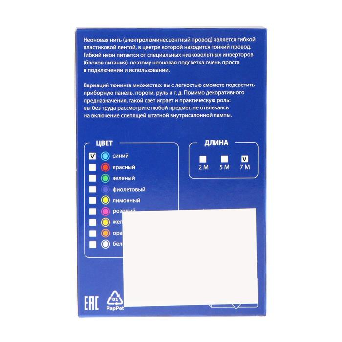 Неоновая нить Cartage для подсветки салона, адаптер питания 12 В, 7 м, синий