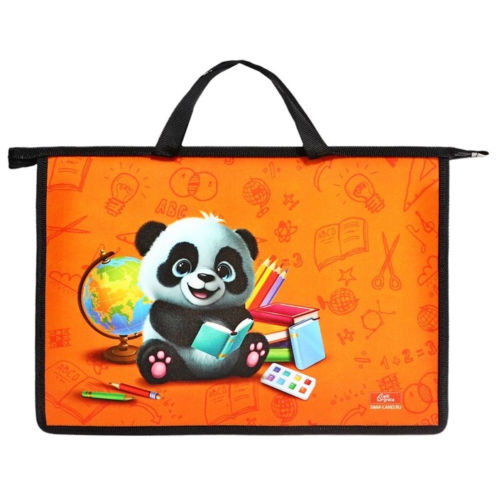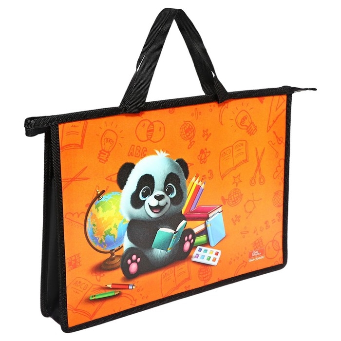 Папка с ручками А4, 335 х 235 х 55 мм, пластиковая, ручки-тесьма, Calligrata "Панда"
