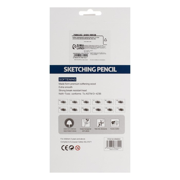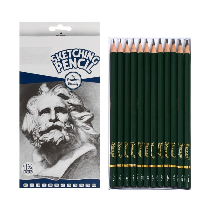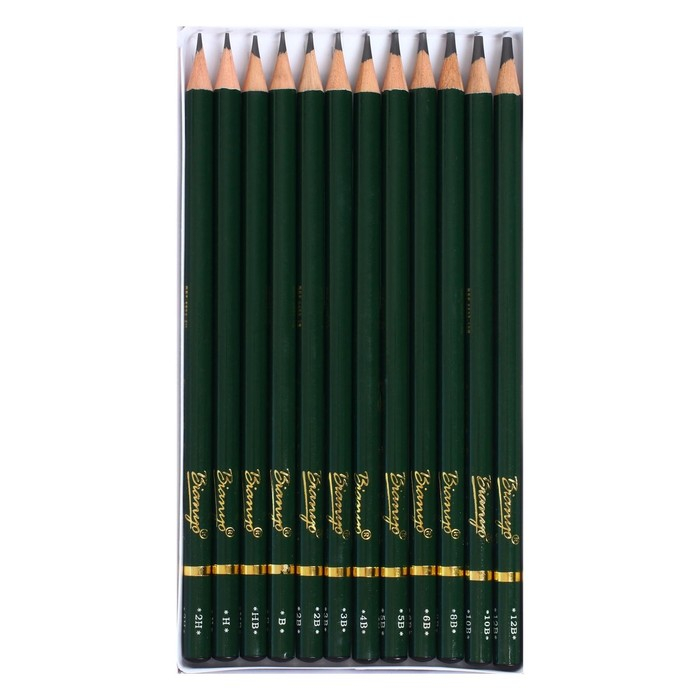 Карандаши художественные набор 12 штук (2H, H, HB, B, 2B, 3B, 4B, 5B, 6B, 8B, 10B, 12B)