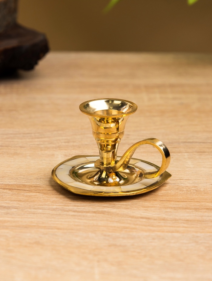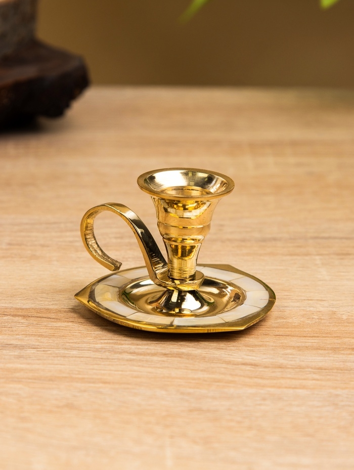 Подсвечник на 1 свечу с блюдцем, латунь 6,5х6,5х4 см