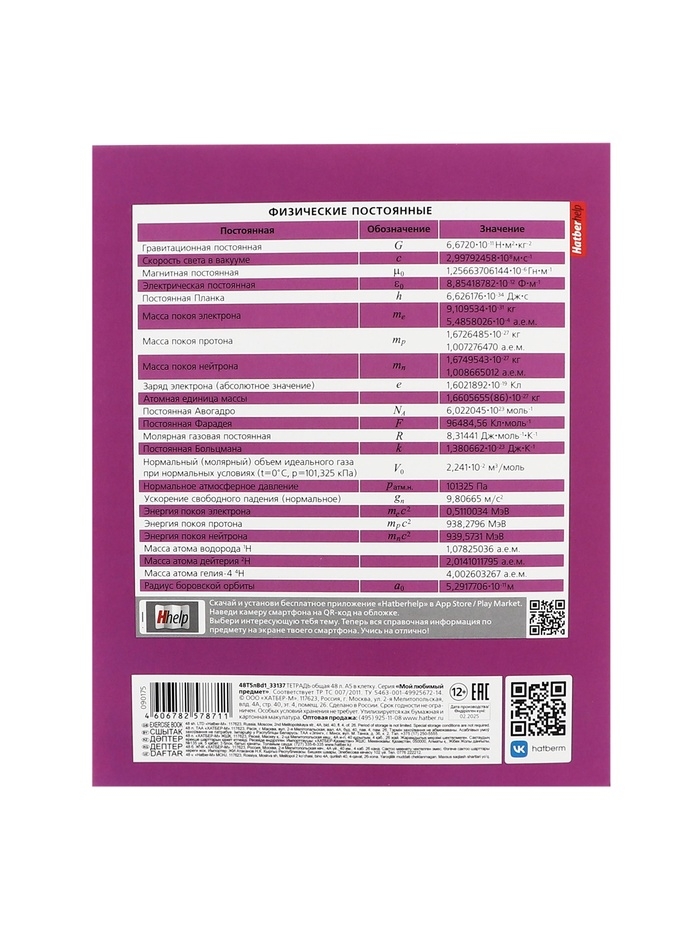 Тетрадь 48 листов в клетку «Мой любимый предмет» ФИЗИКА, обложка мелованный картон, Soft-touch, с интерактивным справочником, блок офсет