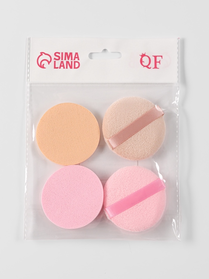 Набор д/макияжа 4шт: 2 пуховки, 2 спонжа латекс/полиэстер роз/беж пакет QF