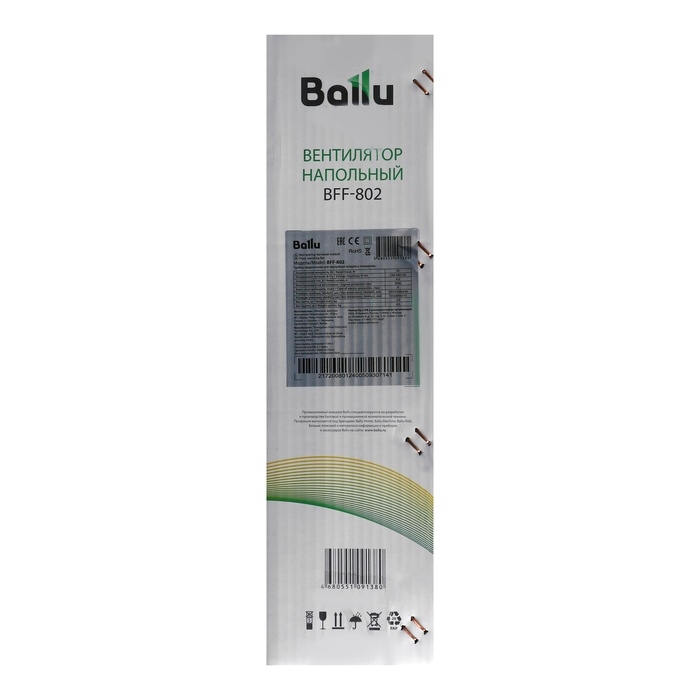 Вентилятор Ballu BFF–802, напольный, 45 Вт, d=35 см, 2000 м3/ч, 3 режима, белый