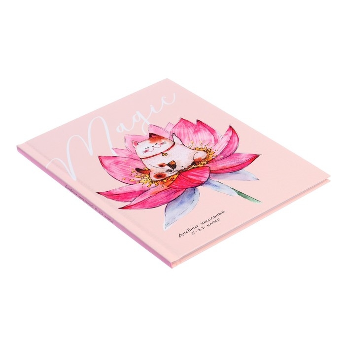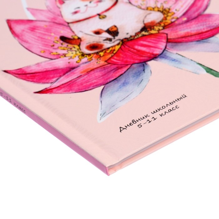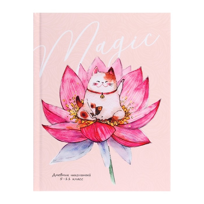 Дневник для 5-11 классов, 48 листов "Японский котик", твёрдая обложка, выборочный лак, блок офсет