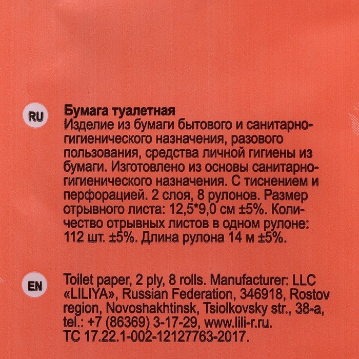 Описание: двухслойная туалетная бумага Лилия изготовлена из 100% целлюлозного сырья.