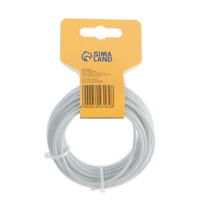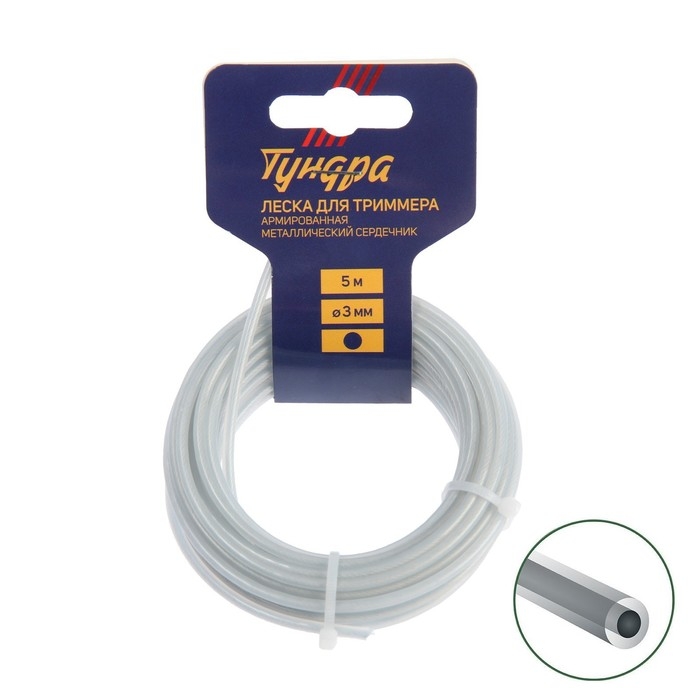 Леска для триммера ТУНДРА, сечение круг, метал. сердечник, армированная, d=3 мм, 5 м