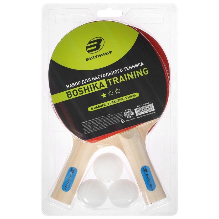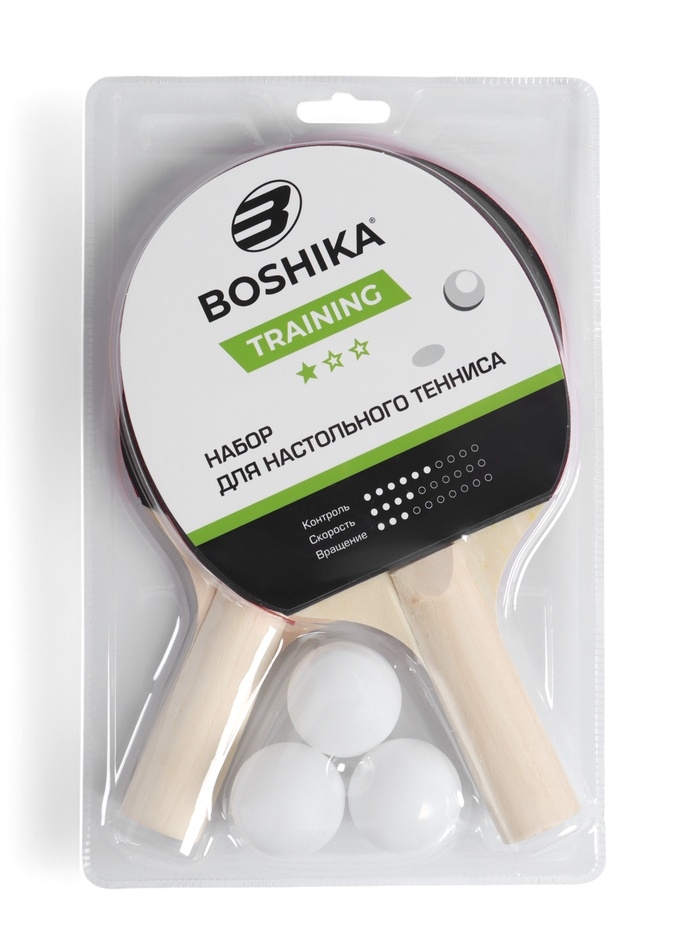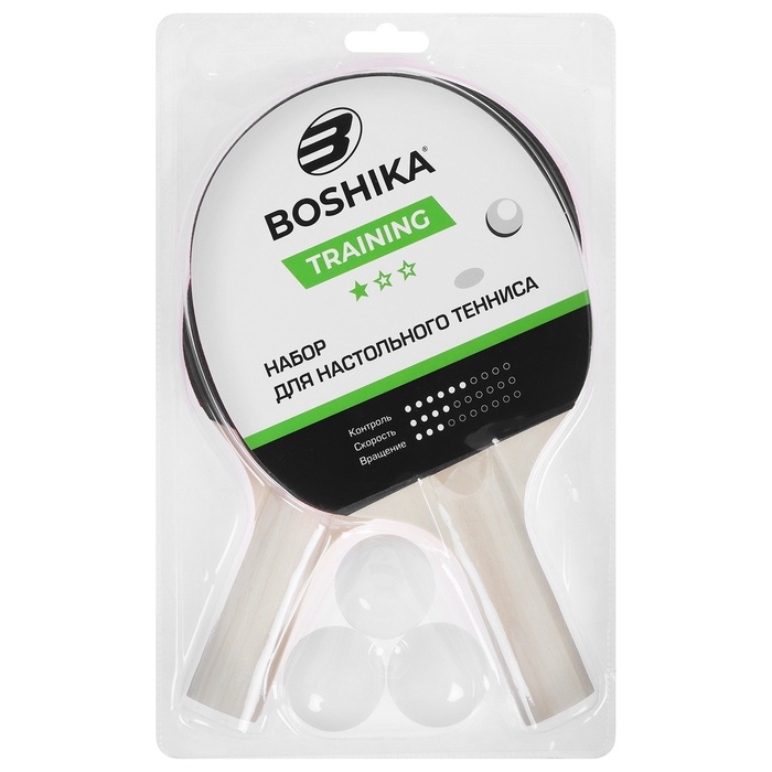 Набор для настольного тенниса BOSHIKA Training: 2 ракетки, 3 мяча, 1 звезда