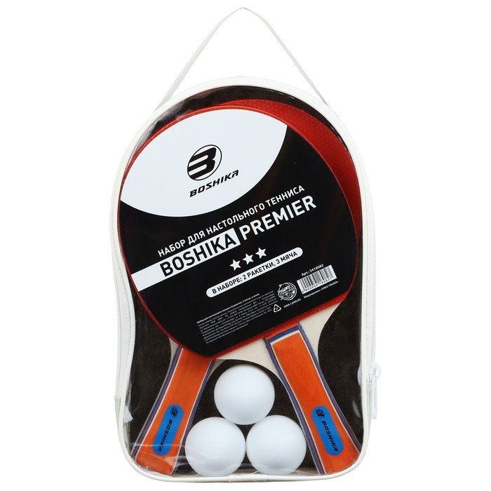 Набор для настольного тенниса BOSHIKA Premier: 2 ракетки, 3 мяча, 3 звезды