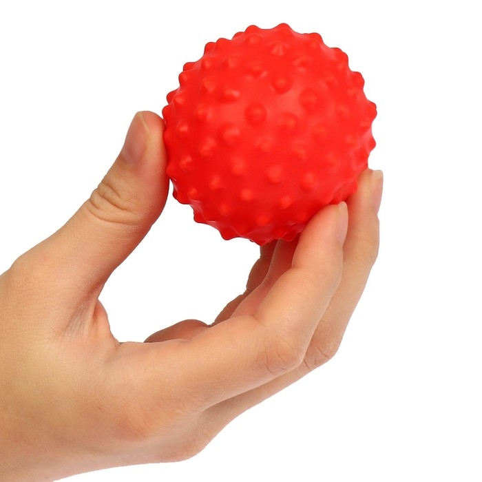 Мячики с рельефной массажной поверхностью способствуют развитию мелкой моторики и тактильных ощущений. Давление на фактурную поверхность мячиков стимулирует и благоприятно воздействует на нервные окончания, ответственные за большинство процессов в организме. Шарики имеют яркие цвета, которые способствуют развитию зрения, а пищалка внутри развивает слуховое восприятие.