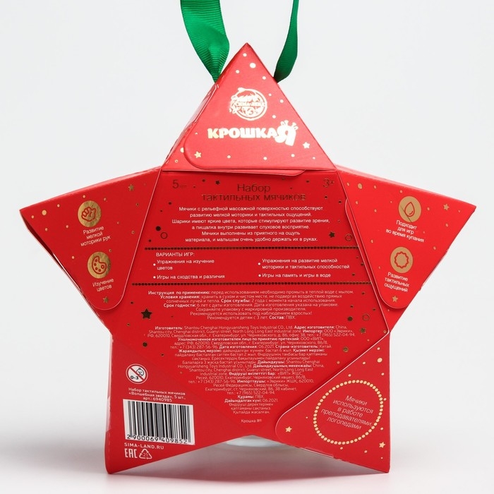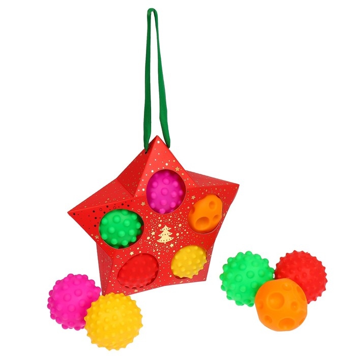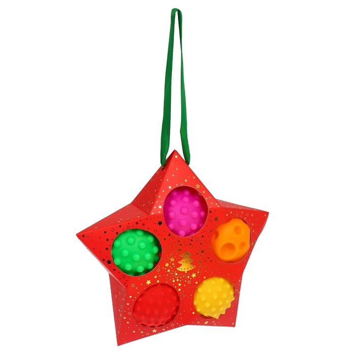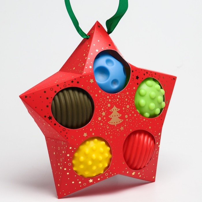 Подарочный набор развивающих, тактильных мячиков Крошка Я «Волшебная звезда» 5 шт., цвет красный