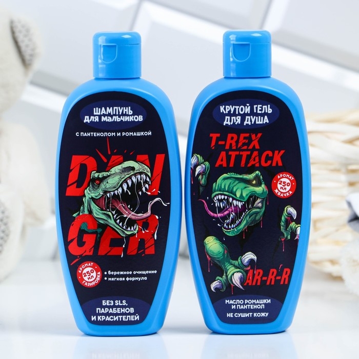 Детский подарочный набор, гель для душа и шампунь для волос, 2×250 мл, переводное тату, Чистое счастье