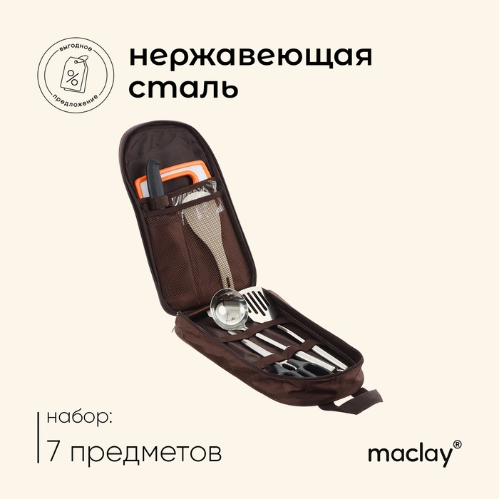 Набор для пикника Maclay: доска, 2 лопатки, ножницы, половник, вилка, нож
