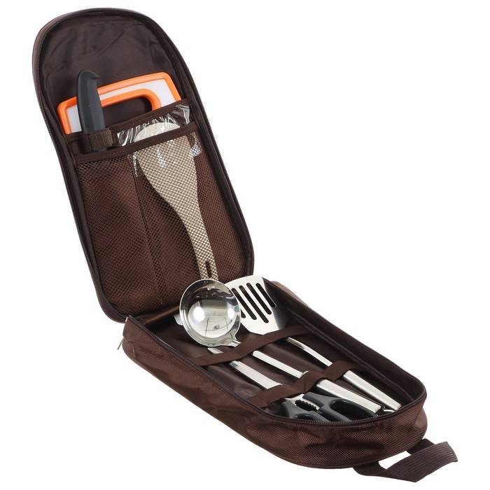 Набор подойдёт для домашней кухни и отдыха на природе. В комплекте есть сумка-чехол для хранения и переноски.