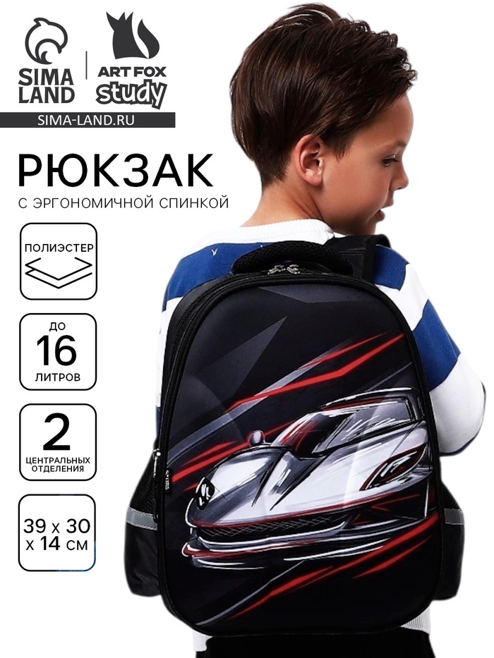 Рюкзак школьный каркасный 39×30×14 см «Машина»