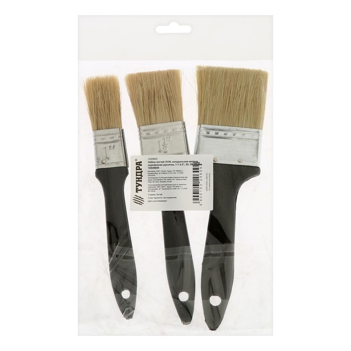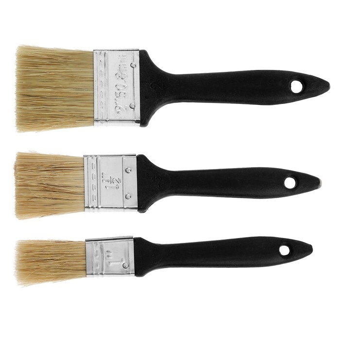 Набор кистей ЛОМ, натуральная щетина, пластиковая рукоятка, 1-1.5-2", 25, 38, 50 мм